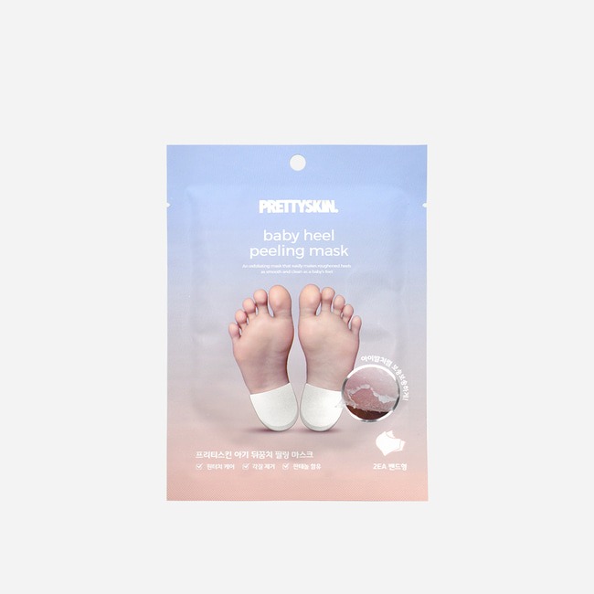 Pretty Skin Baby Heel Peeling Mask (1 Pair / 2 EA) An intensive exfoliating treatment designed to transform rough, calloused heels into soft, smooth skin. This specialized mask focuses specifically on the heel area, utilizing a potent peeling formula to remove dead skin cells and calluses effectively. Easy to apply and highly efficient, it restores the natural softness of your feet, providing a clean and refreshed feel.