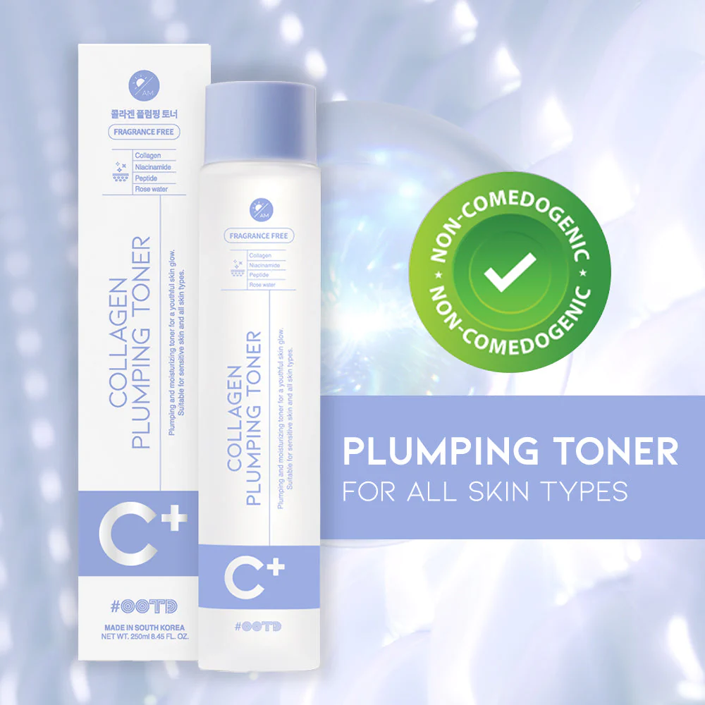 Product Overview: The #OOTD (Oxygen of the Day) Collagen Plumping Toner is a high-performance morning treatment dedicated to delivering a “youthful skin glow”. This fragrance-free formula combines advanced clinical actives with soothing botanicals to provide a practical solution for firming and hydrating the skin at the start of your day. Made in South Korea, it is meticulously researched to be safe for sensitive skin and effective for all skin types.