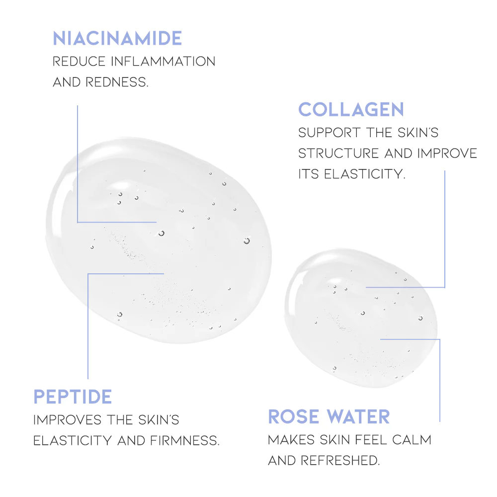 Peptides: Provides essential structural support to help firm and strengthen the skin barrier.