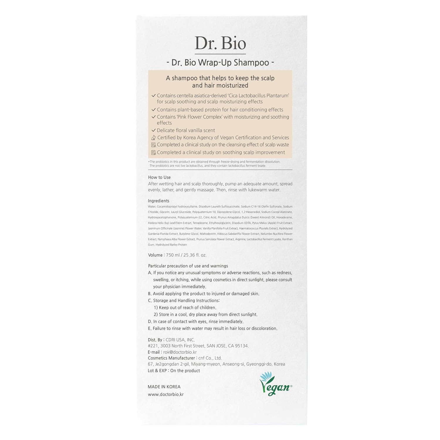 Elevate your daily hair care with Dr. Bio Wrap-up Shampoo, a gentle, silicone-free formula designed for all ages, from newborns to adults. Infused with patented Cica Lactobacillus and plant proteins, it deeply cleanses while actively soothing sensitive or irritated scalps. This 100% vegan, pH-balanced shampoo restores natural shine and moisture balance, leaving hair soft, voluminous, and delicately scented with a subtle vanilla and floral fragrance.