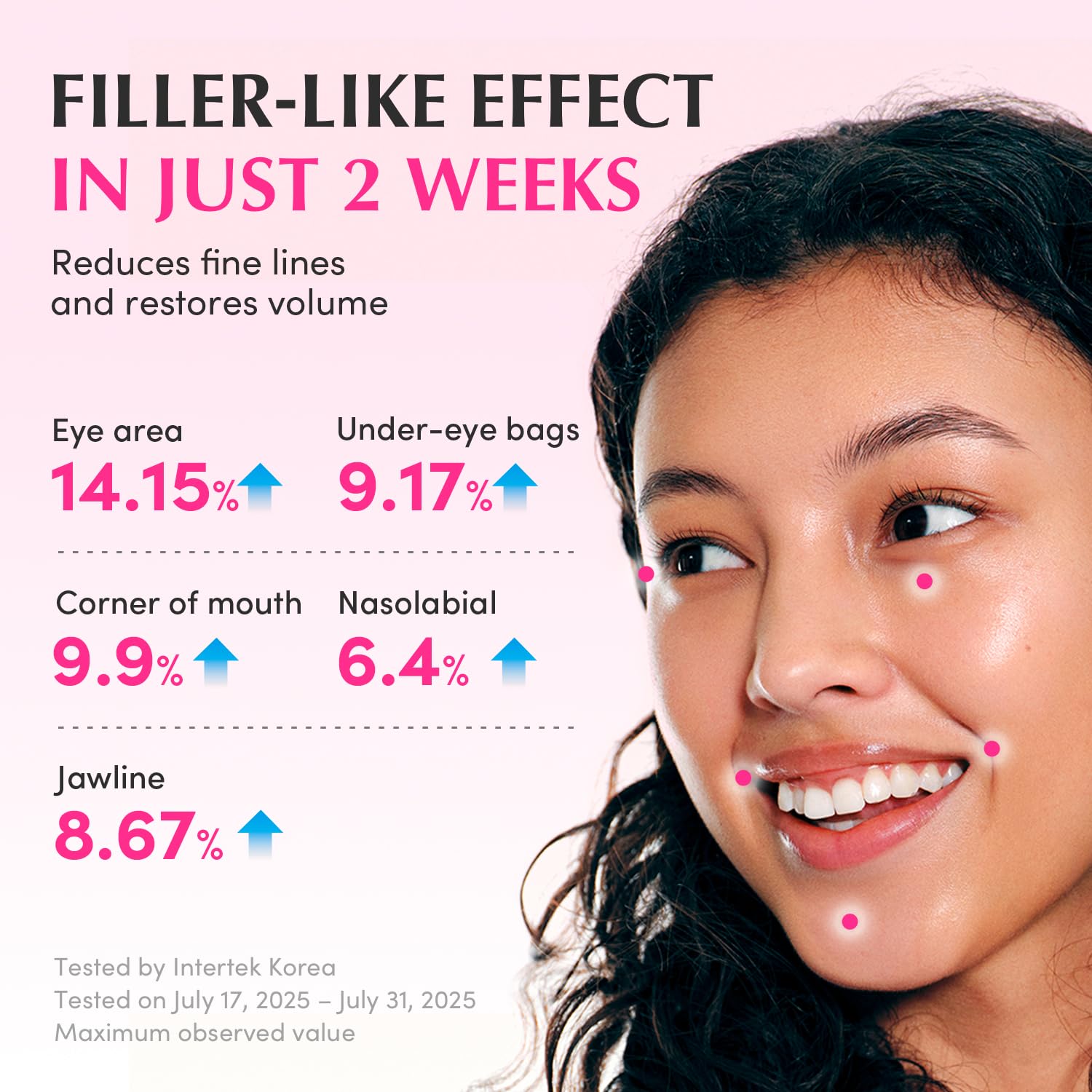Wrinkle Reduction: Smoothes the depth of expression lines and stubborn wrinkles.