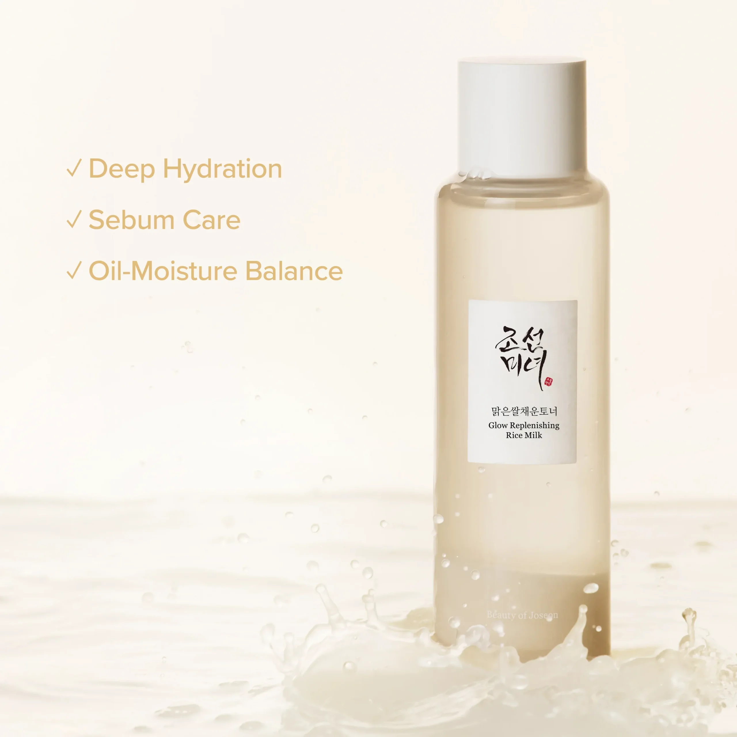 Beauty of Joseon Glow Replenishing Rice Milk Toner is a dual-layer hydrating toner designed to deeply moisturize while balancing excess sebum. Infused with nutrient-rich rice extract and rice amino acids, it helps brighten dull skin, refine pores, and support a healthy skin barrier.