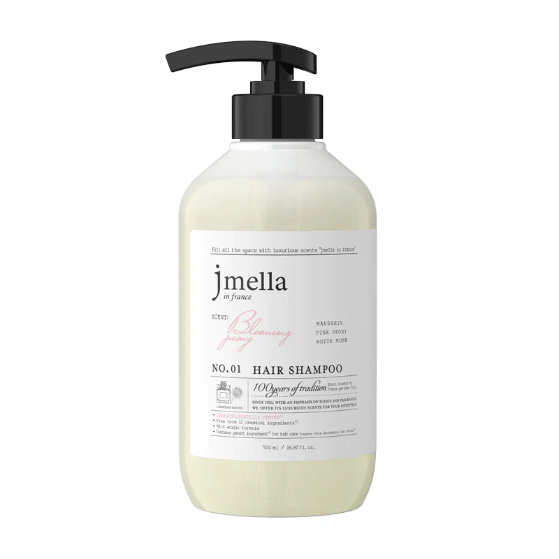Elevate your hair care with Jmella No. 01 Blooming Peony Hair Shampoo. Infused with a luxurious French fragrance of Mandarin, Pink Peony, and White Musk, this gentle cleanser revitalizes dull hair. Its mild acidic formula is dermatologically tested and free from 12 harmful chemicals, ensuring a healthy scalp and silky, fragrant locks all day long.