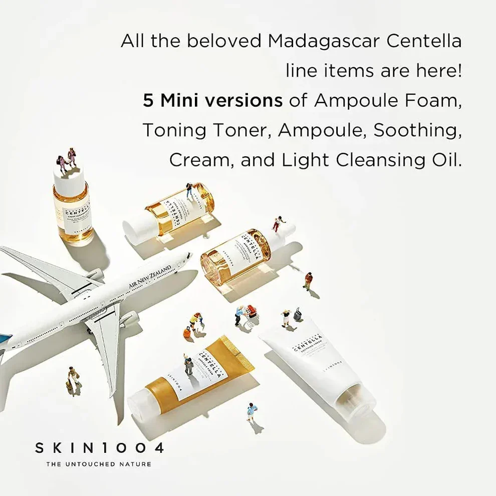 A complete Madagascar Centella travel kit featuring mini essentials to cleanse, soothe, hydrate, and calm sensitive skin on the go.