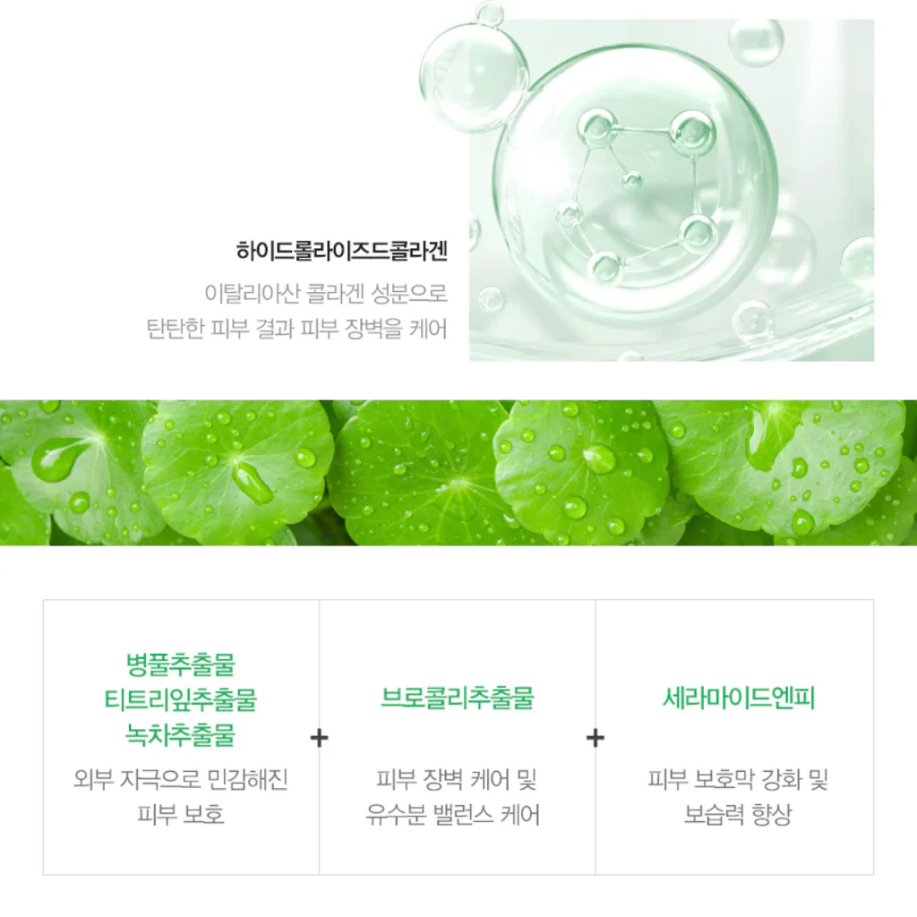 The Green Soothing Trio (Centella Asiatica, Tea Tree, & Green Tea Extracts): A powerful blend that calms redness and protects skin sensitive to external irritation. It is ideal for acne-prone or stressed skin.