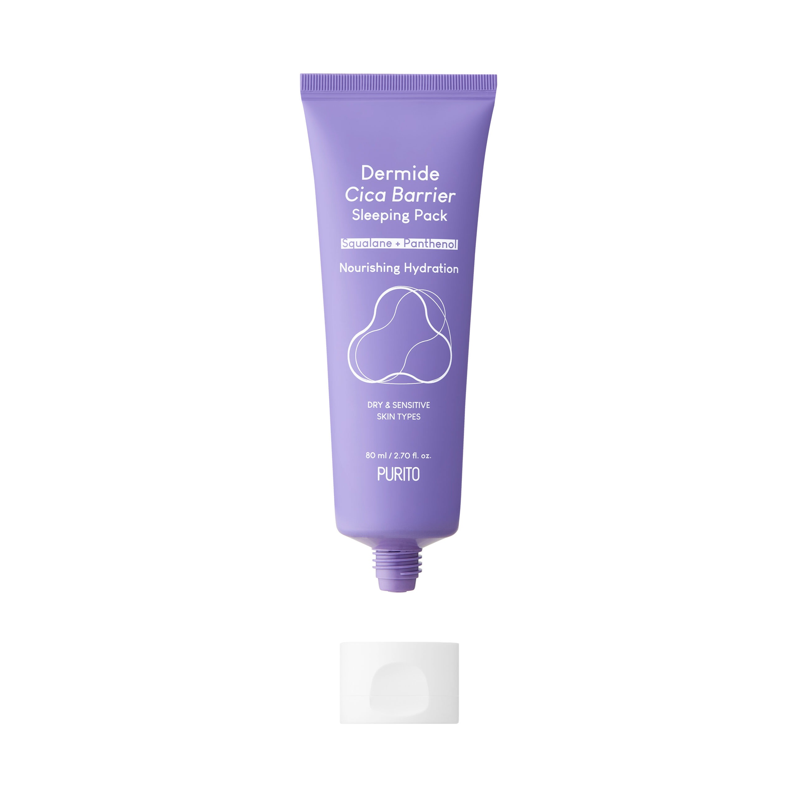Wake up to deeply hydrated, calm skin with the PURITO Dermide Cica Barrier Sleeping Pack. This 80ml overnight treatment is specifically formulated for dry and sensitive skin, using Squalane and Panthenol to repair the skin barrier while you sleep.