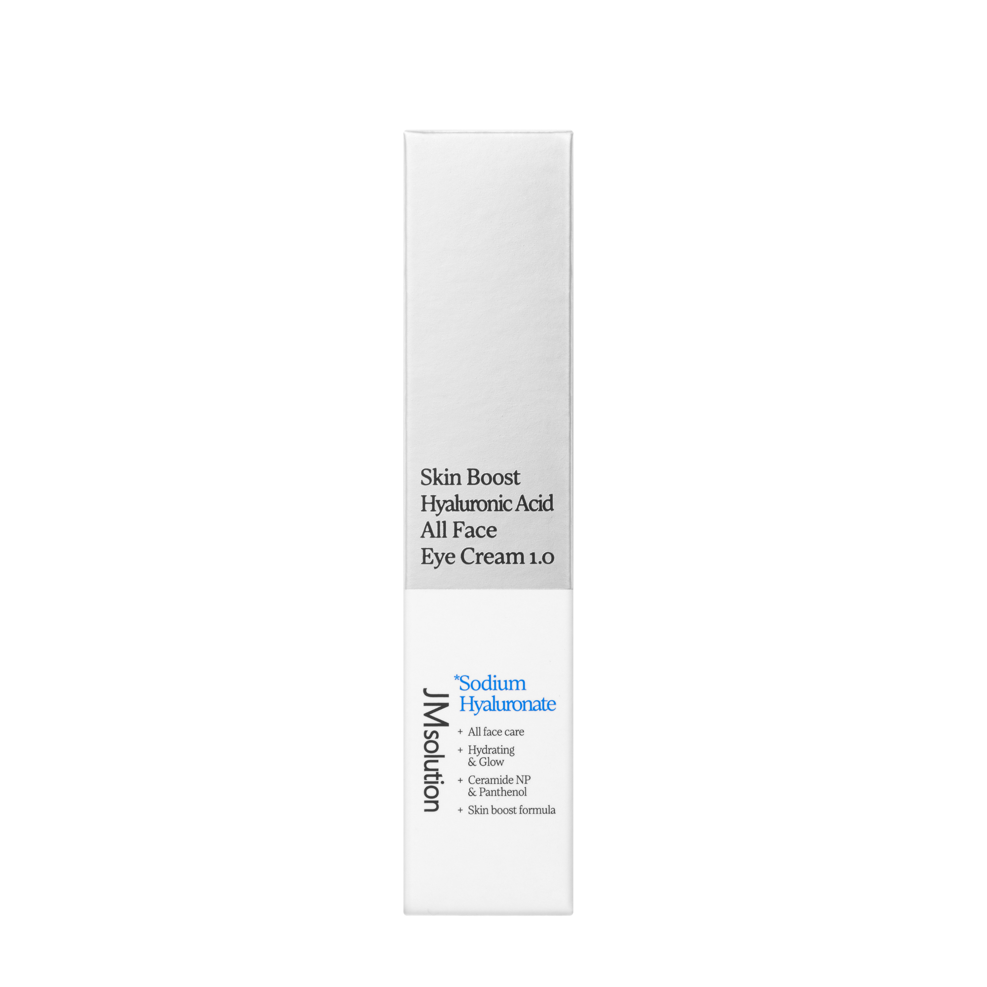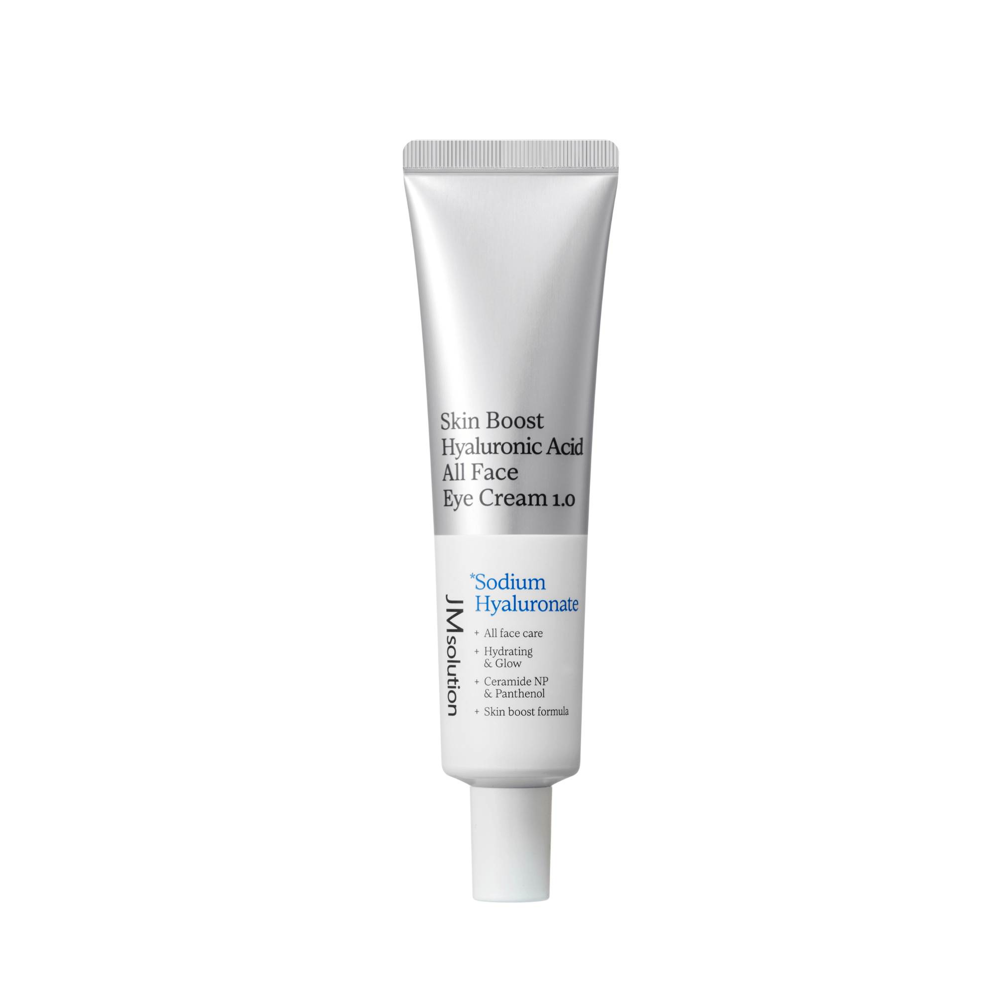 JMsolution Skin Boost Hyaluronic Acid All Face Eye Cream 1.0 is an intensive hydrating treatment for the entire face. Formulated with Sodium Hyaluronate, Ceramide NP, and Panthenol, it provides deep moisture and strengthens the skin barrier to deliver a plump, healthy glow.