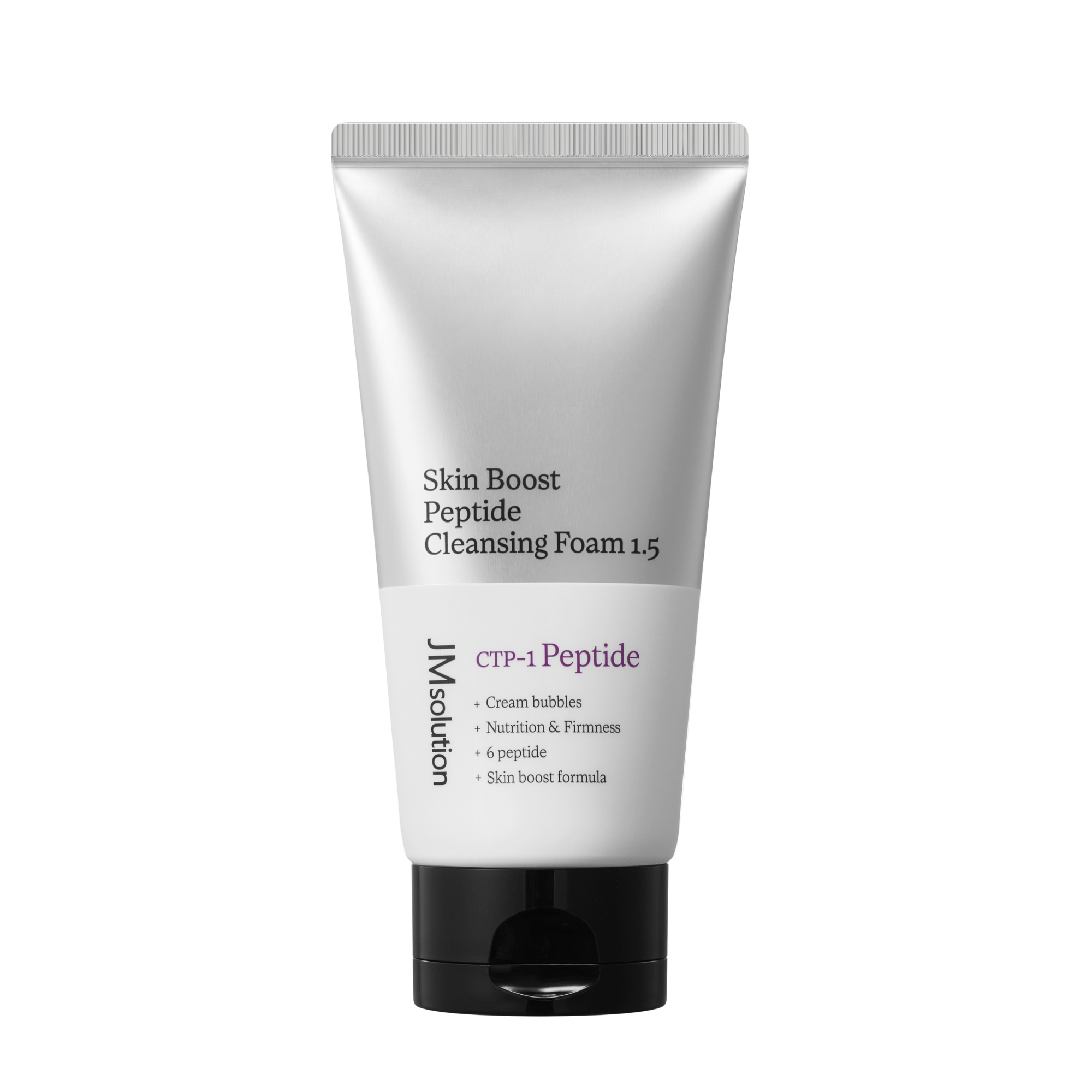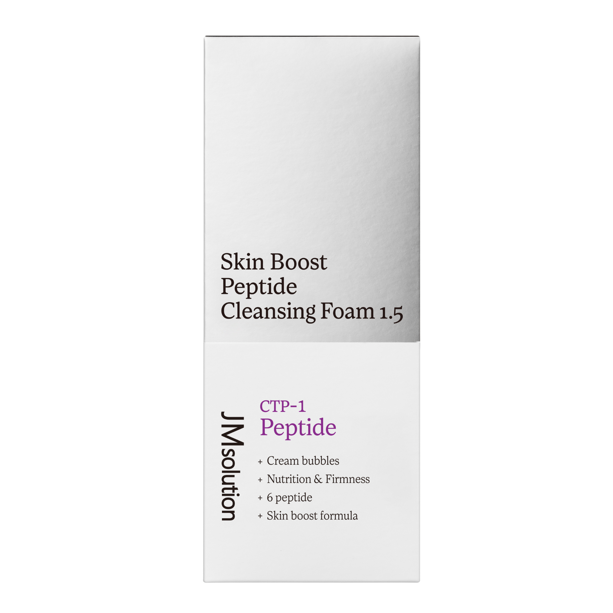 JMsolution Skin Boost Peptide Cleansing Foam 1.5 (150ml) A luxurious, firming cleanser formulated with CTP-1 Peptide and a 6-Peptide Complex to nourish and revitalize the skin. Featuring dense “Cream Bubbles,” this foam deeply purifies the pores while delivering essential nutrients to improve skin elasticity. Designed to leave the face feeling plump, firm, and thoroughly refreshed without any post-wash dryness.