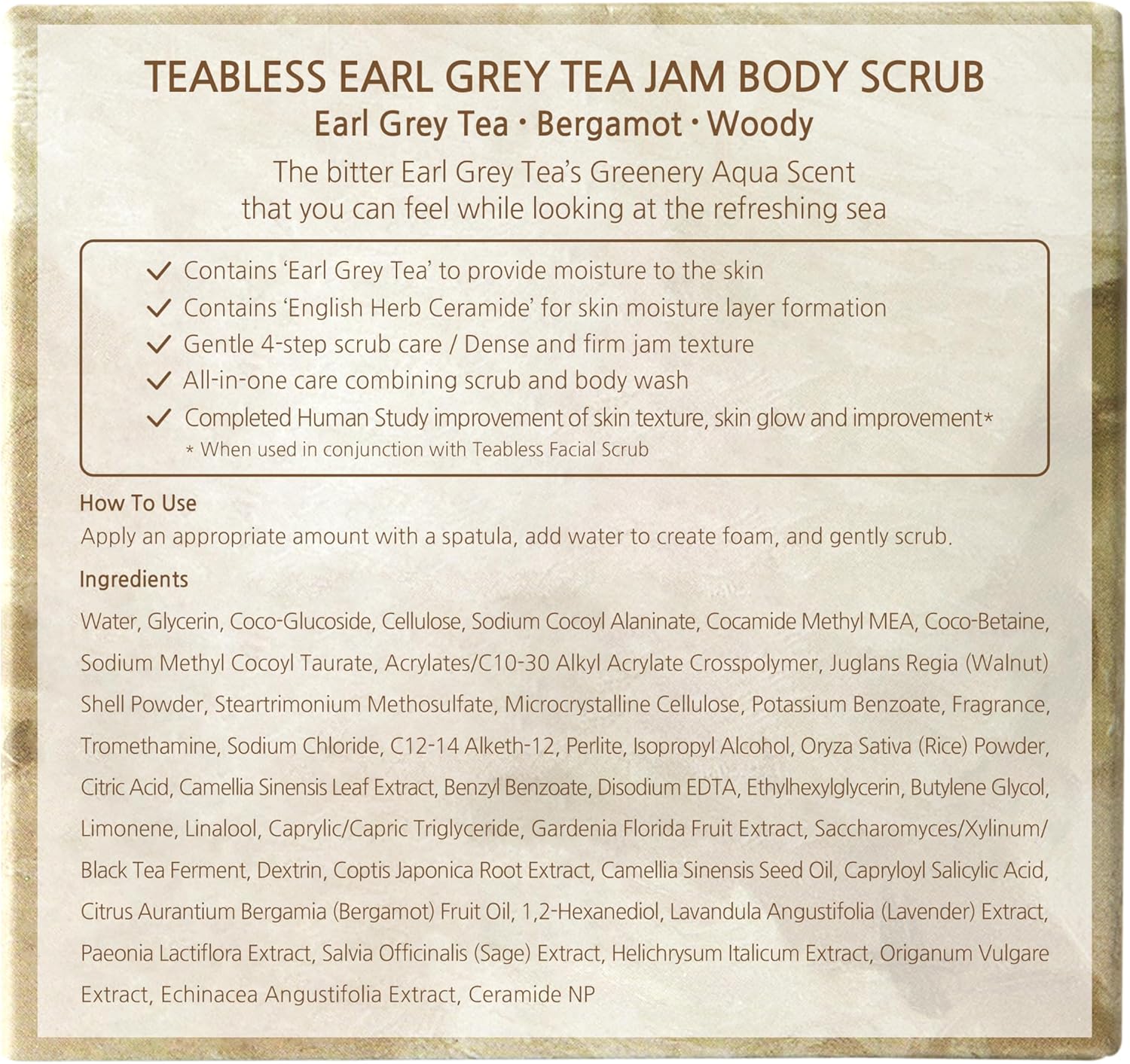 Teabless Earl Grey Tea Jam Body Scrub Wash 300g