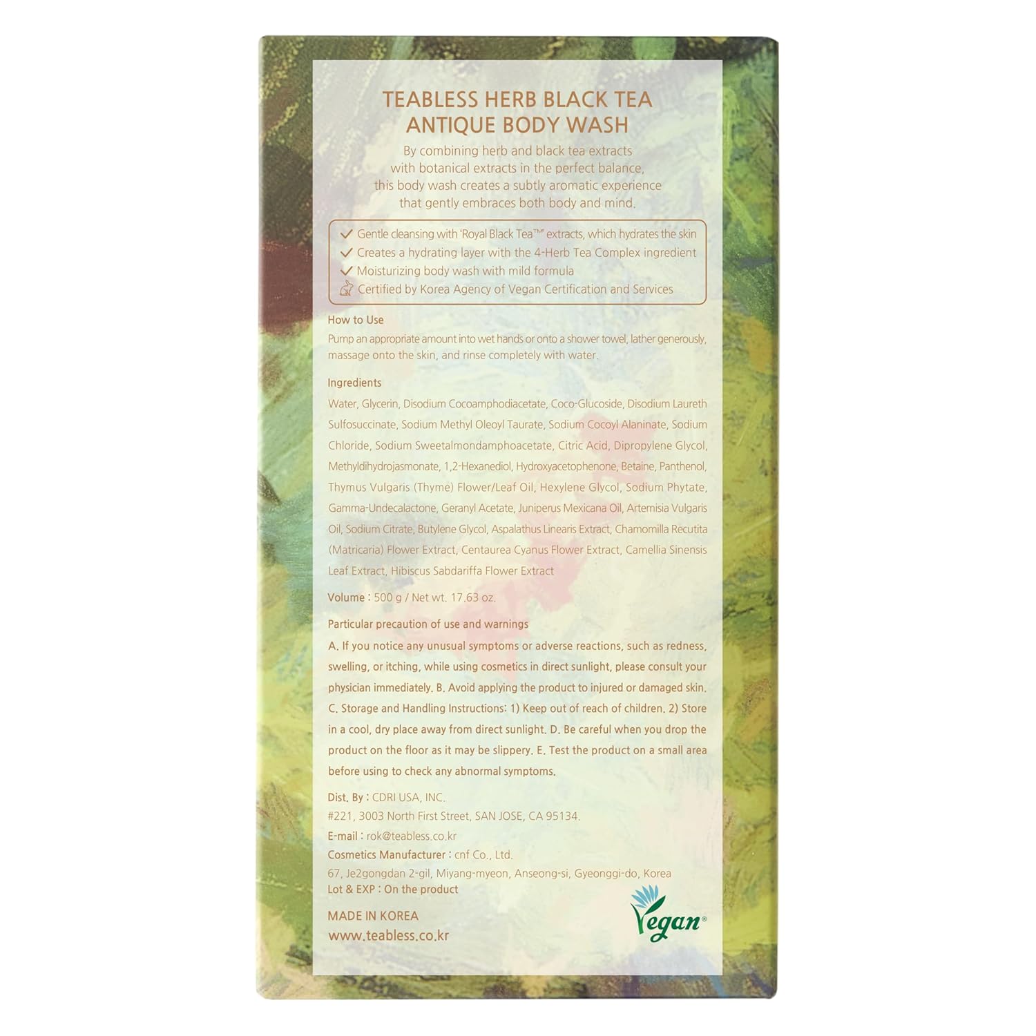 Teabless Herb Black Tea Antique Body Wash 500g