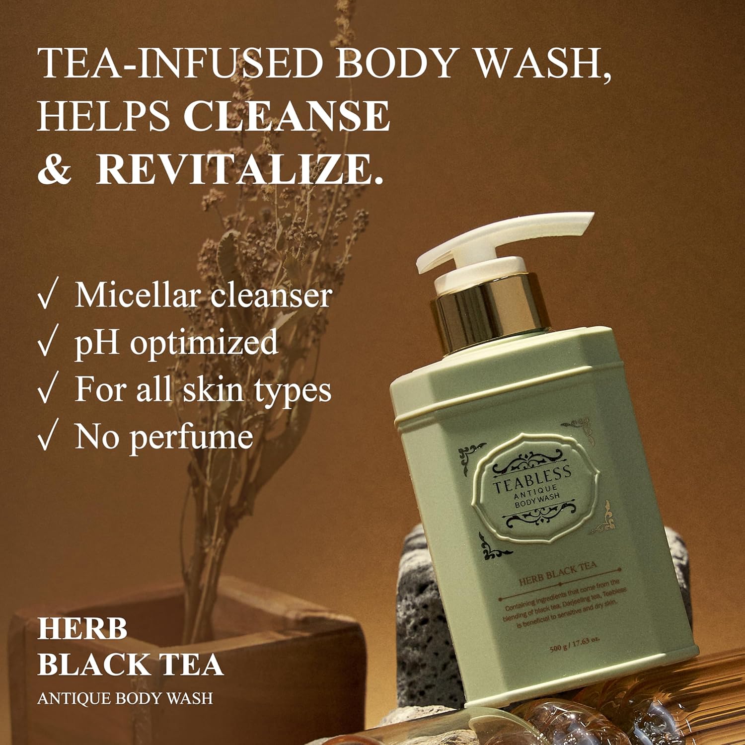 Pro Tip: For maximum hydration and a resilient fragrance, follow up with the matching Teabless Herb Black Tea Antique Body Lotion.