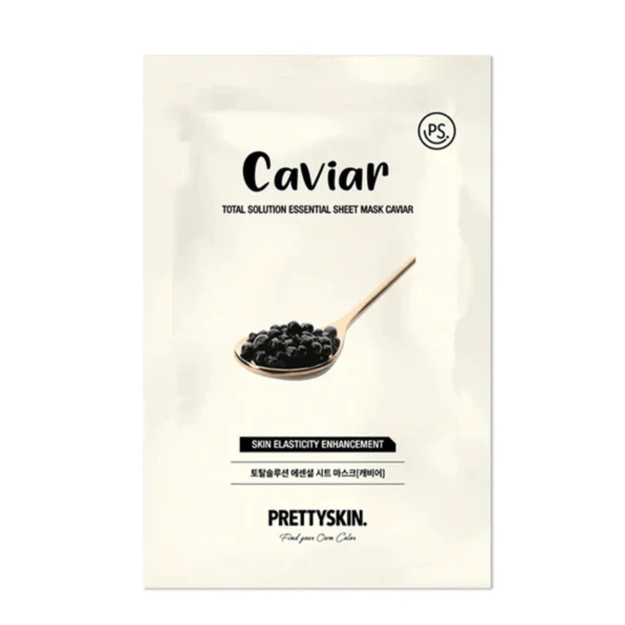 Pretty Skin Total Solution Essential Sheet Mask – Caviar (23g) A premium firming sheet mask formulated to provide intensive elasticity care and deep skin nutrition. Infused with Caviar Extract, often referred to as “black diamonds” for the skin, it delivers a high concentration of amino acids, vitamins, and minerals. This mask works to strengthen the skin’s structure, improve resilience, and restore a youthful, healthy glow to sagging or exhausted skin.