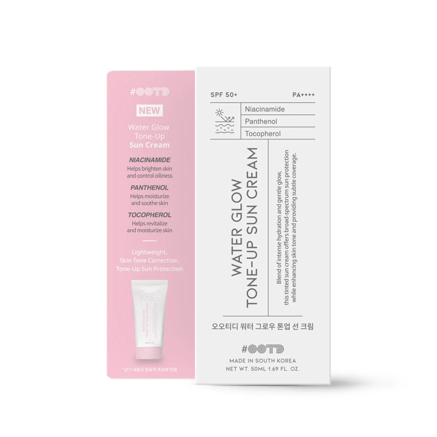 Brighten and protect your complexion with the #OOTD Water Glow Tone-Up Sun Cream. This lightweight, tinted sun cream provides broad-spectrum SPF 50+ PA++++ protection while offering subtle coverage and skin tone correction. Infused with Niacinamide, Panthenol, and Tocopherol, it hydrates and revitalizes skin for a natural, glowing finish.